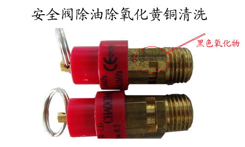 安全閥在系統中起安全保護作用,主要用於(yú)鍋爐、壓力容器和管道上。安全閥的材質一般都是黃銅,極易發生氧化。在生産(chǎn)安全閥時,産(chǎn)品經過振動盤之後就會産(chǎn)生發黑現象,在組裝之前需要對其表面的氧化物進行清洗,同時需要使用保護劑進行抗氧化處理以防止二次氧化。